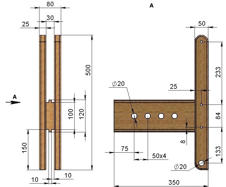ВАЖЛИВО! Деталі з дерева повинні знаходитися в сухому, провітрюваному приміщенні, для запобігання деформації і тріщин. Металеві вироби перед складанням конструкції, обробити наждачним папером.