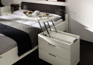 - Висотою ліжка. З точки зору ергономіки, оптимальною вважається висота приблизно дорівнює висоті ліжка, це дозволить не тягнутися, за предметами, які покладені на її поверхні.