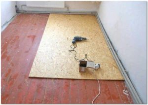 Вирівнювання підстави виконують по маяках, які роблять у вигляді шурупів, закручених у дерев'яна підлога на необхідній висоті. А щоб капелюшки саморезов не височіли над прикрученими листами фанери або ЦСП, в місцях кріплення спочатку роблять отвір, потім баньки і тільки після цього фіксують. Між листовим матеріалом залишають зазори 2-3 мм (для фанери), щоб температурні зміни не вплинули на рельєф площині підлоги.