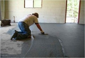Після застигання маяків готують суміш у співвідношенні цементу до піску 1:3. Ретельно перемішують з водою до отримання сметанною консистенції і заливають підлогу.