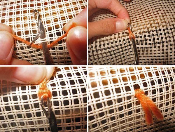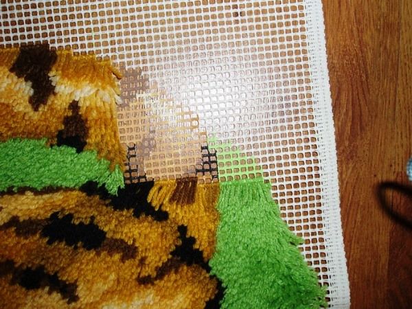 Тильна сторона виробу виходить дуже акуратною, це просто вузлики. Ви можете залишити все як є або ж можна закрити основу відрізу щільної тканини. Для цього просто приклейте її.