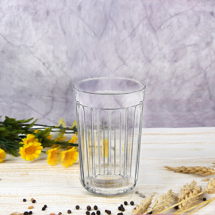 Версій багато! Достовірно можна сказати лише те, що склянка з ребрами був широко поширений вже в перших роках 20 століття.