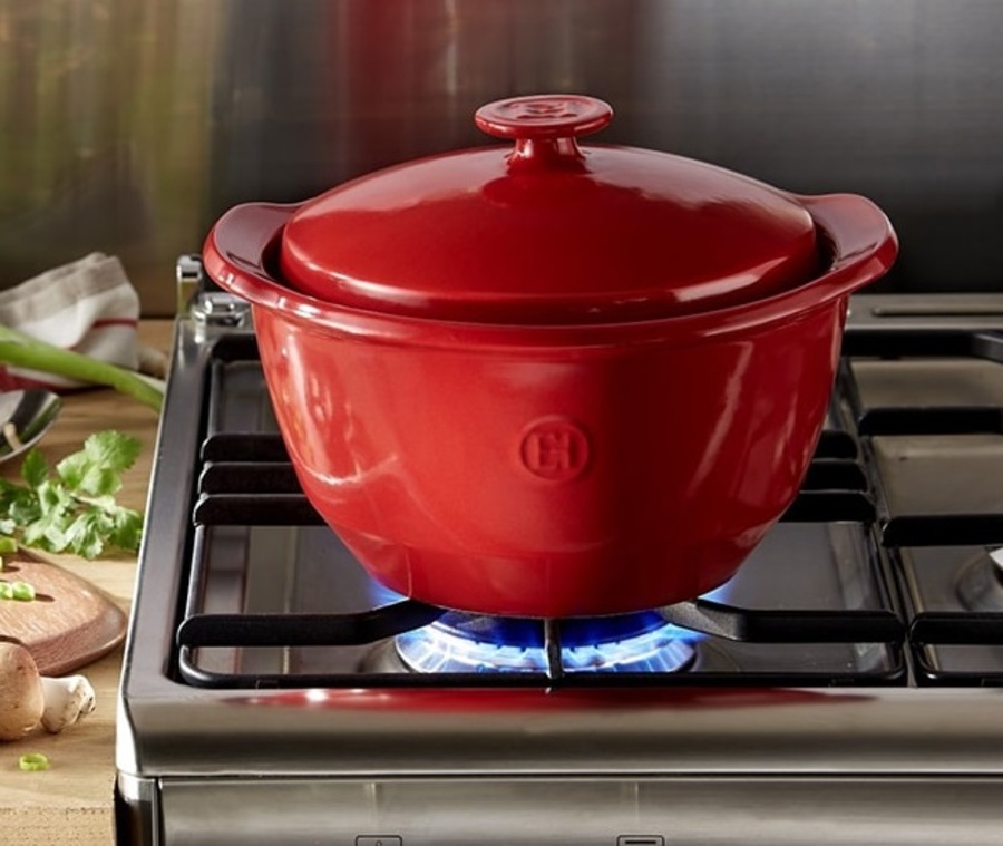 - Багатофункціональність. Керамічні вироби добре підходять для приготування перших і других страв. Це відмінна можливість використовувати мінімум посуду для комбінованої готування, так як в такому посуді можна спочатку обсмажити продукти, а потім зварити в ній суп, наприклад.