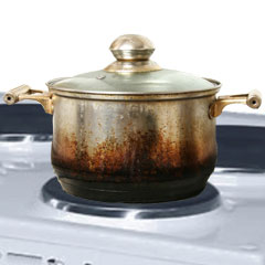 Кип'ятіння в розчині соди непогано видаляє пригоріла бруд. Потрібно знайти посуд великого обсягу, налити в неї п'ять літрів води і довести до кипіння. Після цього в окріп додати пачку соди. В отриману суміш опустити каструлю і продовжувати кип'ятити дві години. Після цього, завдавши на м'яку губку соду, прибрати залишилися забруднення.