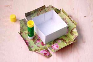 - Приклеюємо другу заготовку для дна, щоб приховати смужки паперу, що з'єднують дно з бічними стінками.