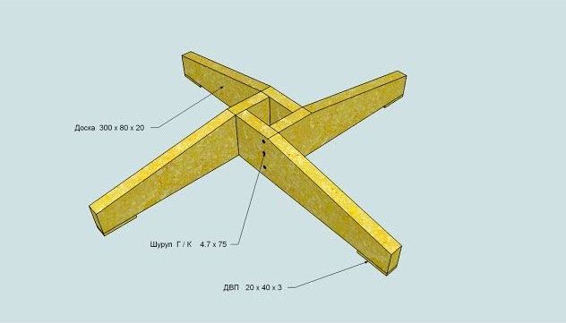 УВАГА! Розмір підставки слід підбирати виходячи з габаритів дерева. Чим вище ялинка — тим, відповідно довший потрібно робити опори для підставки. Якщо під ялинку планується встановлювати відро з водою, щоб красуня довше не засихала, то опору потрібно робити на ніжках. Довжина ніжок повинна бути більше, ніж відро.