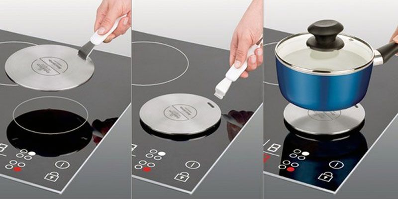 Варильна панель нагріває каструлі завдяки індукції. Саме в тому місці, де ємність стикається з поверхнею, виникає електромагнітне взаємодія і термоэффект. Інше покриття залишається неробочим. Якщо розмір дна великий, то можна використовувати дві конфорки як одну, загалом температурному режимі.
