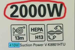 На корпусі апарату буквою W найчастіше вказується саме споживана потужність. У багатьох випадках вона вище, ніж показник всмоктування. Бажаючи створити враження потужного пристрою, виробник вказує більш високу цифру. Але до всмоктуванню вона не має прямого стосунку.
