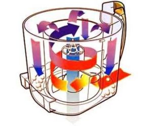Елементи бруду, видалені з кімнати, під впливом цього штучного завихрення не можуть спокійно опуститися в колбу. Вони потрапляють на її стінки по всій довжині окружності висоті ємності.
