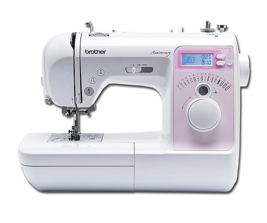 - Brother INNOV–'IS 10 (22 тис. руб.). Цікава модель з електронним управлінням за прийнятною ціною. Спочатку привертає увагу брендом — на всі машинки Brother дається хороший гарантійний строк і представляється сервісне обслуговування – це брендове перевагу. Але і сама по собі Brother INNOV–'IS 10 є вдалим сплавом якостей. Вважається однією з кращих для новачків. У неї гарний функціонал: 16 операцій, стабілізатор зусилля проколу, автопетля, зручний дисплей і можливість шити без педалі. Ця модель дуже приємна у зверненні – ясне і просте управління, легкість в роботі роблять її однією з кращих.