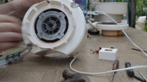 Наступним етапом є зняття кожуха електродвигуна. Необхідно прибрати всі гвинти та болти, які заважають безпосередньо зняття ручки перемикання і вивільнити всі дроти. Також відгвинтити всі болти плати управління двигуна соковижималки і відкласти.