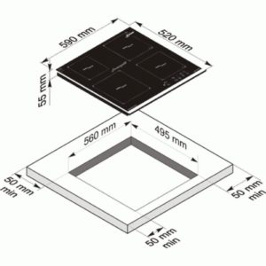 - Вбудовувані незалежні моделі Frank виготовлені із загартованого скла, кількість конфорок – 5 газових, один з вбудованою колоною – TC, потужність пристрою становить — 3600, 3х1750/1000, габарити для встановлення — 560х480 мм.