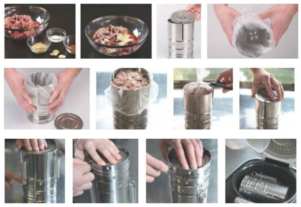 Простір в ветчиннице ділиться на три рівня. Чим менше її заповнюваність продуктами, тим більш високий рівень варто вибирати. Верхню кришку при цьому потрібно встановити максимально високе положення. Тоді тиск пружин буде сильніше, і шинка спрессуется набагато краще.