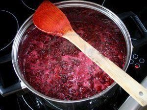 Не чекаючи повного остигання заповнити ємності продуктами та продовжити процес консервації згідно з рецептом.
