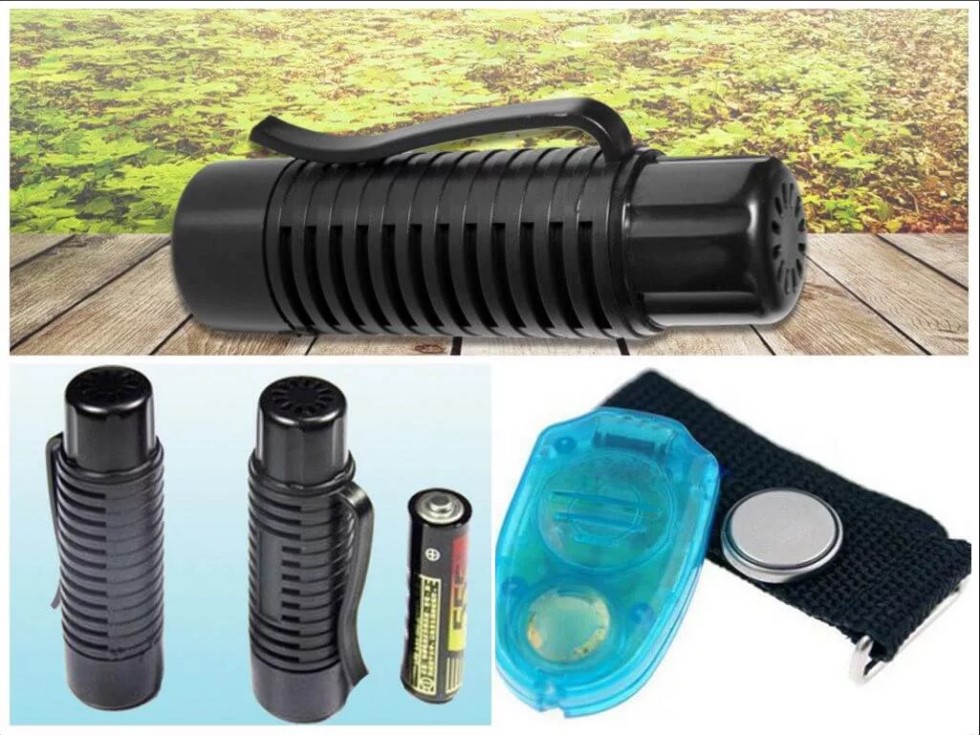 Це досить потужний пристрій, що дозволяє вільно почувати себе навіть увечері біля річки або ставка. За зовнішнім виглядом нагадує брелок з затиском, зручно фіксується на ремені. Працює від однієї батарейки в радіусі дії до 10 кв. м. Такий прилад обійдеться в 700 рублів.