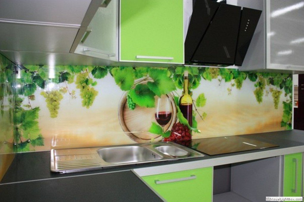 Важливо! Завдяки різноманіттю кольорів та принтів, скло ідеально впишеться в будь-який інтер'єр. А фотодрук дозволить створити індивідуальне зображення, наприклад, з відображенням самих приємних моментів сімейних подорожей.