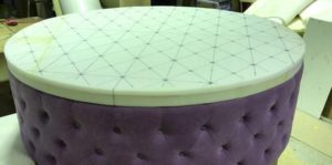 Спочатку, на підготовленій деталі фанери, в точках розташування гудзиків, дрилем просвердлюються отвори. Поролон клеїться зверху, за допомогою відповідного клею. Розмітку на поролон наносять за розмірами, знятим з експериментального зразка. В точках перетину ліній ромбів просвердлюються отвори спеціальною насадкою або вирізають ножицями, якщо насадки не знайшлося.