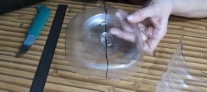 - Відрізане заздалегідь денце також розрізаємо на дві половинки.