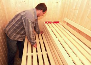 Встановлювати полиці потрібно біля стіни, яка не має отворів і вентиляційних отворів. Неодмінно потрібно дотримуватися безпечної дистанції між лавкою і пічкою-кам'янкою. Найчастіше встановлюють лавки навпроти один одного.