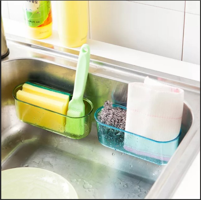 - Губку або ганчірку можна розмістити на відкритій верхній полиці кухонного гарнітура. У цьому випадку ганчірку треба покласти в підставку з вентиляцій, наприклад, в мильницю.