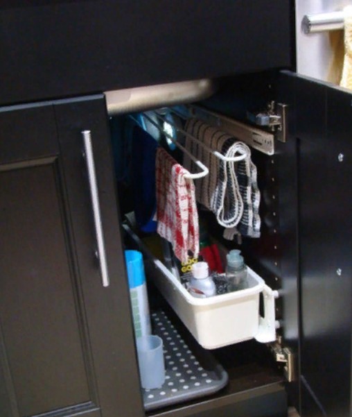 Зберігається поряд з раковиною ганчірка для миття виглядає неестетично. Але знайти зручне місце для її зберігання досить складно, адже ця річ повинна бути завжди під рукою і при цьому перебувати не на виду.