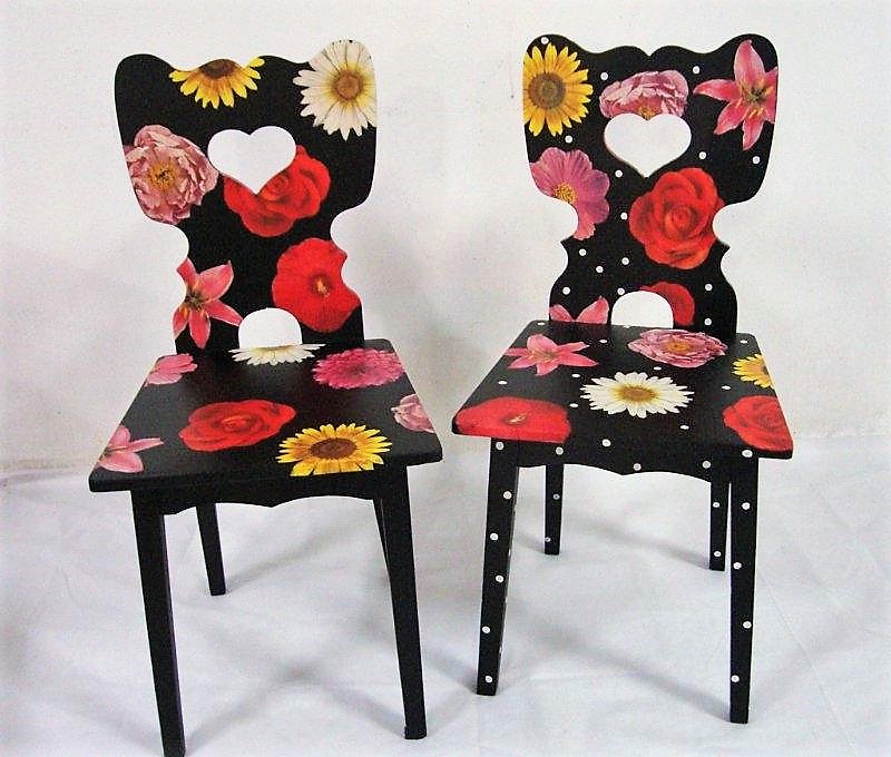 Фарбування допоможе повністю оновити старі меблі. При правильному підборі відтінку стільці гармонійно впишуться в будь-який інтер'єр. В якості додаткового декору підійде орнамент, яскраві малюнки, нанесені вручну або за допомогою трафаретів.