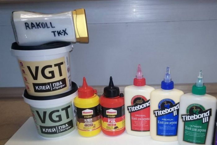 - ПВА (полівінілацетат), та інші на його основі. Він перевірений часом, надійний, абсолютно нетоксичний і екологічно безпечний. До переваг також можна віднести низьку вартість доступність, відсутність необхідності спеціальної підготовки перед використанням.