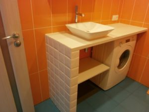 - Гіпсокартон – найпоширеніший і недорогий матеріал, з яким легко працювати, у продажу є водостійкі листи. Однак, досить крихкий, для врізних раковин потрібно посилення каркасу.