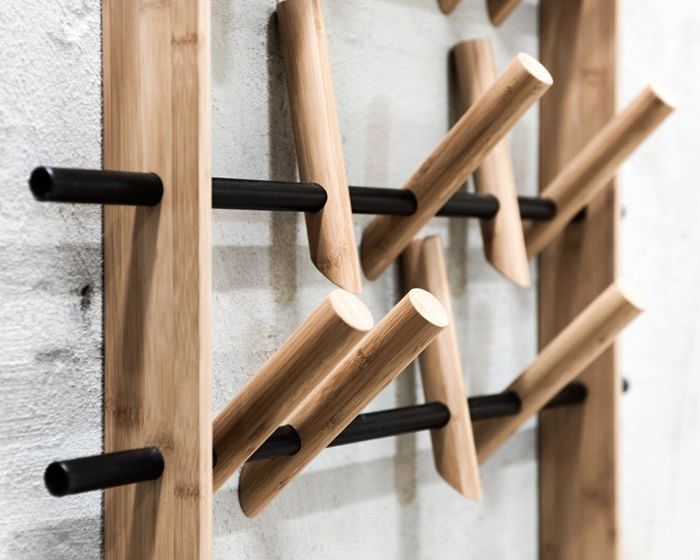 Одним з найпростіших видів вішалок, які можна зробити самостійно, є дерев'яна дошка з гачками, приурочена до стіни на оптимальній висоті. До неї часто прикріплюють невелику поличку зверху для шапок і шарфів.