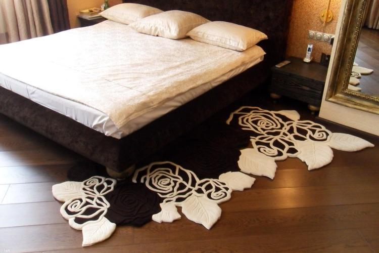 Важливо! Дизайнерські інтер'єри досить часто доповнюють килимами цікавої і незвичної форми. Виконані у вигляді крапель, квітів, різних фігур або шкур тварин вони виглядають стильно і молодіжно.