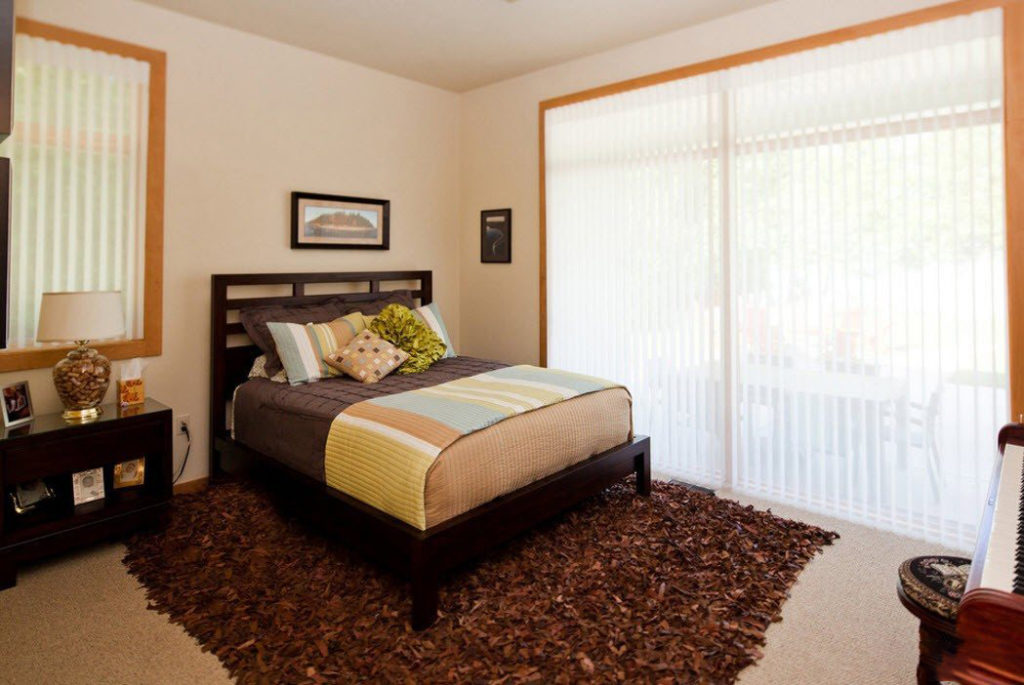 Думаючи над тим, в якому місці спальні покласти килим, можна вдатися до кількох способів розміщення. Традиційним вважається расстилание в зоні сну, під ліжком. При виборі такого варіанту, кожен раз встаючи з ліжка, можна не боятися, що ноги стикнутися з холодною підлогою.