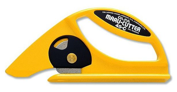 Для різання підлогових покриттів при укладанні, в принципі, підійдуть і звичайні, кравецькі ножиці, при умови що вони добре наточені, але для цих цілей існує спеціалізований інструмент. Зовні такі ножиці більше нагадують секатор, причому ручка розташована під кутом до ріжучої кромки, нерідко пильного типу. Дана конструкція забезпечує надійність і зручність при роботі. Крім лінолеуму, дозволяють з легкістю рівно різати пластик і ковролін. Ціна виробу залежить від його якості, мало-мальськи професійний інструмент обійдеться приблизно в тисячу рублів. Перевага перед звичайними кравецькими ножицями в тому, що спеціалізований інструмент не закушує лінолеум і не відходить в сторону, в результаті виходить значно більш акуратний рез.