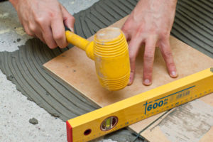 - Після кожної покладеної плитки перевіряйте її рівень щодо тих, що лежать поруч. У разі необхідності підніміть її і додайте розчин або приберіть зайвий.