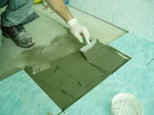 Після вирівнювання підлоги на нього наноситься гідроізоляційне покриття і грунтовка. Можна обійтися і без цього, але в разі затоплення одного плиткового клею, швидше за все, не вистачить, щоб утримати воду.