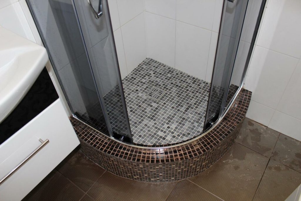 Довідка. Для додаткового комфорту підстава кабінки можна оснастити системою «тепла підлога». Завдяки йому не потрібно чекати, поки плитка прогріється від води. Також утеплити підлогу можна за допомогою листів пінополістиролу, які укладаються під плитку.