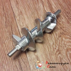 - Шнек-вал. З його допомогою відбувається просування перемелюваних продуктів з чаші до різців, а потім до виходу. Шнек має вигляд спіралі, виготовляється з міцного металу.