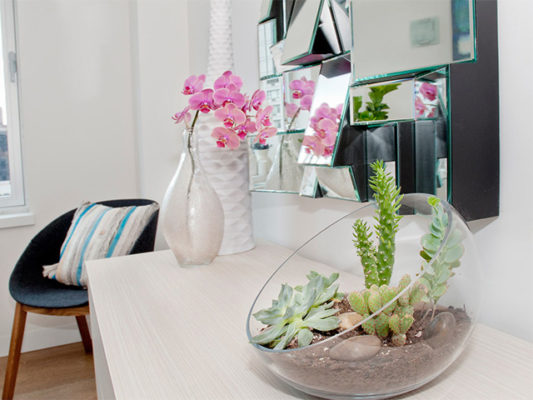 Розведіть будь-які квіти або хоча б живучі кактуси. Рослини поглинають звуки, тому сміливо тисніть на підвіконня стильними горщиками. Їх можна поставити в під'їзді, заодно оживіть сумовитий пейзаж.