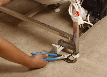 Всередину піддону наливається вода, потім він підводиться. При цьому потрібно зазначити, на якій висоті стік води йде більш інтенсивно. Цей параметр вимірюється і на таку висоту зводиться постамент.