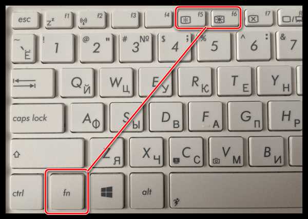 - Знайдіть на клавіатурі відповідні клавіші із зображенням регулювання яскравості (зазвичай використовується сонце або лампочка).