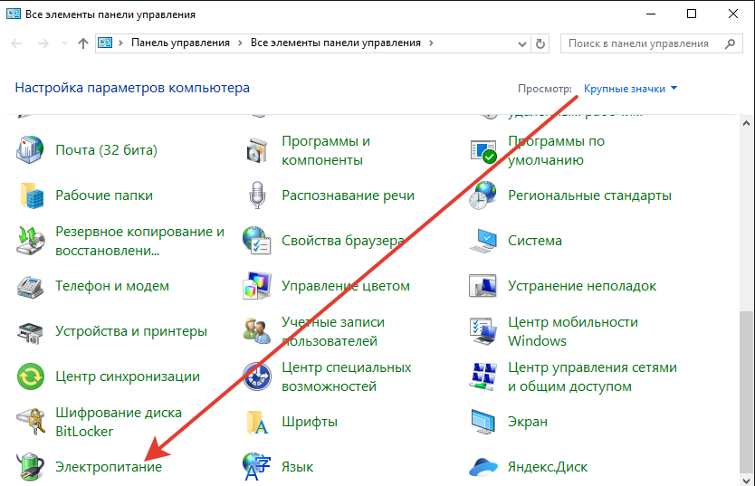 - Серед можливих варіантів знайдіть пункт «налаштування електроживлення».