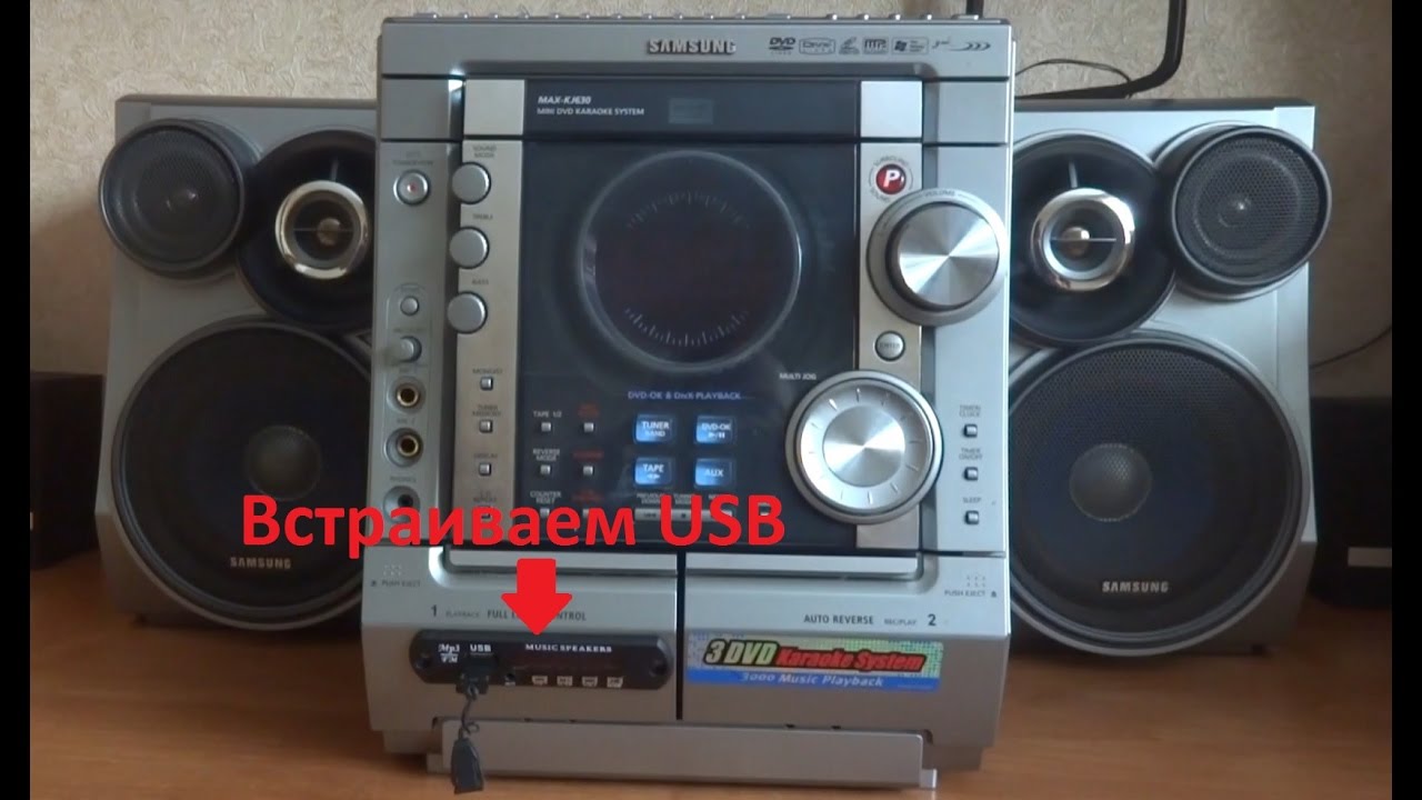 - Зробіть спеціальний отвір під USB порт. При наявності у музичному центрі роз'єму під касети можна використовувати його в якості відсіку для установки.