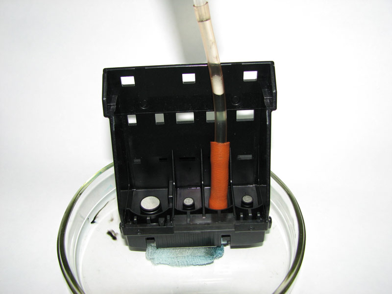 - друкуюча головка знімається і поміщається в очищувальну рідина на 1 см (на 2-3 хвилини);