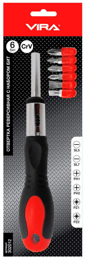 Інструмент Vira 302012. В комплекті іде набір з шести біт, тому модель вважається кращою серед представників свого класу. Біти дозволяють працювати як з прямими, так і фігурними шліцами. Також до переваг набору можна віднести невисоку вартість.