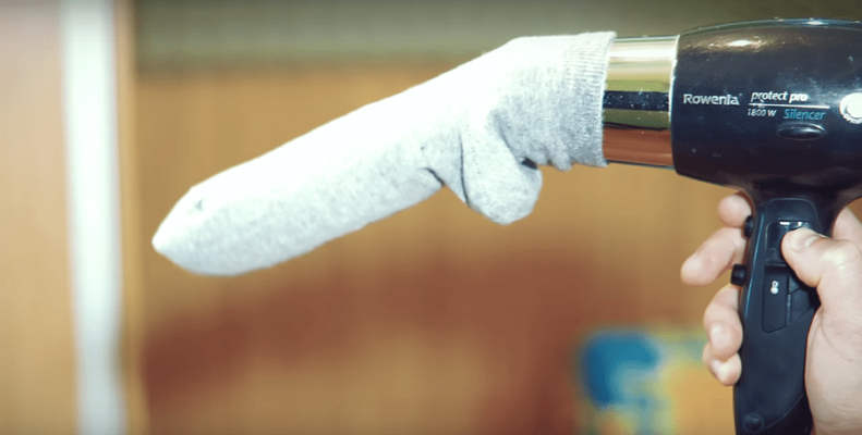 Коли в хаті холодно, ми включаємо обігрівач, заодно розвішуючи навколо нього випрану білизну. Тепло випаровує вологу, одяг сохне, всі задоволені. Фен – це екстрений спосіб подачі спека під напором. Для швидкого ефекту кофту, светр або джинси розкладають на спинці стільця, акуратно розправляють складки, щоб не утворилося заломів, і включають прилад. Гарячим повітрям обдуваем з усіх сторін, і приблизно за півгодини навіть одяг з важкої тканини висохне! Що говорити про горезвісні шкарпетки з синтетики? Кадри з натягнутим носком на агрегат для укладання волосся обійшли весь інтернет. Це ж дійсно спосіб сушіння для ледачих і не дуже, і якщо пару шкарпеток не шкода, то от з іншими речами слід дотримуватися обережності.