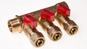 - Для спрощення процедури має сенс купити готовий до установки колектор, в комплект якого входить запірна арматура. Ці вузли, які будуть змонтовані на висновки теплих підлог, радіаторів опалення та інших споживачів тепла. Під час експлуатації теплової мережі, домовласник отримає можливість відключення тих чи інших контурів опалювальної мережі, але при цьому частина контурів буде продовжувати роботу.