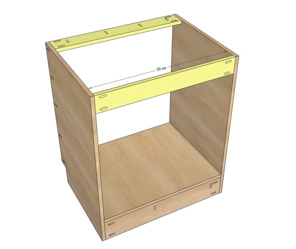 - Щоб зафіксувати верх каркаса, скористаємося поперечками у верхній частині. Задню стінку прикріпимо до однієї з цих поперечок. Тому вона повинна бути досить тонкою.
