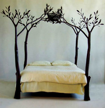Автор цієї ліжка створив диво, втіливши ліс в металі! Його варіант відрізняється максимальною деталізацією, кожне дерево виконано так, що ми можемо розгледіти будь листочок аж до найдрібніших жилочек. Ліжко стане відмінним притулком для любителів лісу, в ній можна відчути себе ельфом, ночующим в лісовій кроні.
