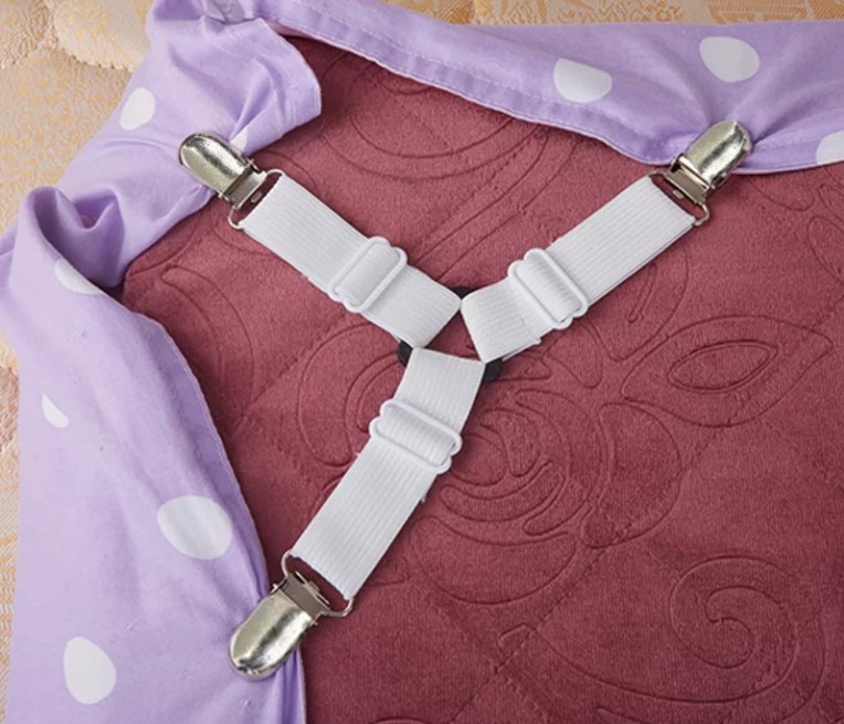 Варіантів кріплення простирадла, запобігають її сповзання, чимало. Для цього використовують відповідну фурнітуру, всілякі затискачі та фіксатори.