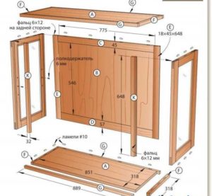 Після проведення всіх необхідних вимірів і розпилу, збірка буфету проводиться в такому порядку: